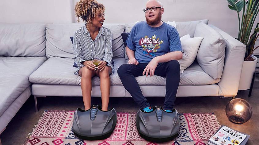 Relieve tired feet and improve blood flow with deep kneading, shiatsu rolling, and heat functions. Shiatsu massage with 2 independent foot chambers and 5 air pressure settings .